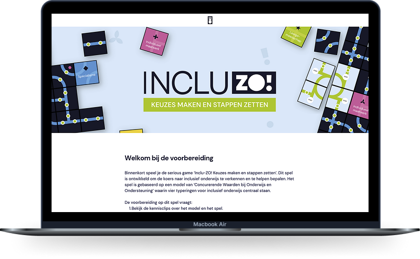 Dit spel is ontwikkeld vanuit het gedachtegoed van het boek Van individueel naar inclusief onderwijs (Bert Wienen, 2023) en het Model van Concurrerende Waarden bij Onderwijs en Ondersteuning (Willeke Doornbos & Mirjam van Oers, 2025). Zo koppelt Inclu-zo! theorie en praktijk en maakt het ingewikkelde keuzes concreet en bespreekbaar.